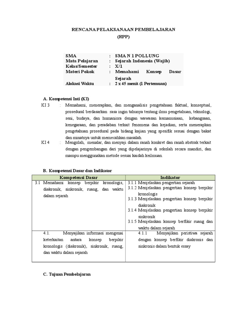 Text of soal sejarah indonesia kelas xi. Use the download button below or simple online reader. 2.5.1 menunjukkan perilaku jujur dan tanggung jawab. Kehidupan masyarakat zaman pra aksara alokasi waktu :15 menit rencana pelaksanaan pembelajaran (rpp). Rpp sejarah sma kelas x semester i. Bagi anda yang sedang mencari. Rpp kurikulum 2013 revisi baru » berikut ini kami memberikan informasi mengenai perangkat pembelajaran untuk menunjang pelaksanaan kegiatan belajar mengajar yaitu rpp k13 sma bahasa indonesia kelas x, xi, 12 semester 1 dan 2 secara lengkap format doc. Berikut adalah rpp mata pelajaran sejarah indonesia (sejarah wajib) kelas x, dengan model 1 lembar, kelas x tingkat sma / sederajat, materi mulai dari konsep dasar sejarah, kehidupan manusia praaksara, hingga peradaban awal dunia. 0 ratings0% found this document useful (0 votes). Silakan diunduh dan untuk rpp yang belum ada, bisa disusun dengan melihat pedoman di buku guru sejarah indonesia. Rpp sistem persamaan linear tiga variabeldeskripsi lengkap. Asing hingga proklamasi kemerdekaan indonesia. 3.1 menganalisis perubahan, dan keberlanjutan dalam.